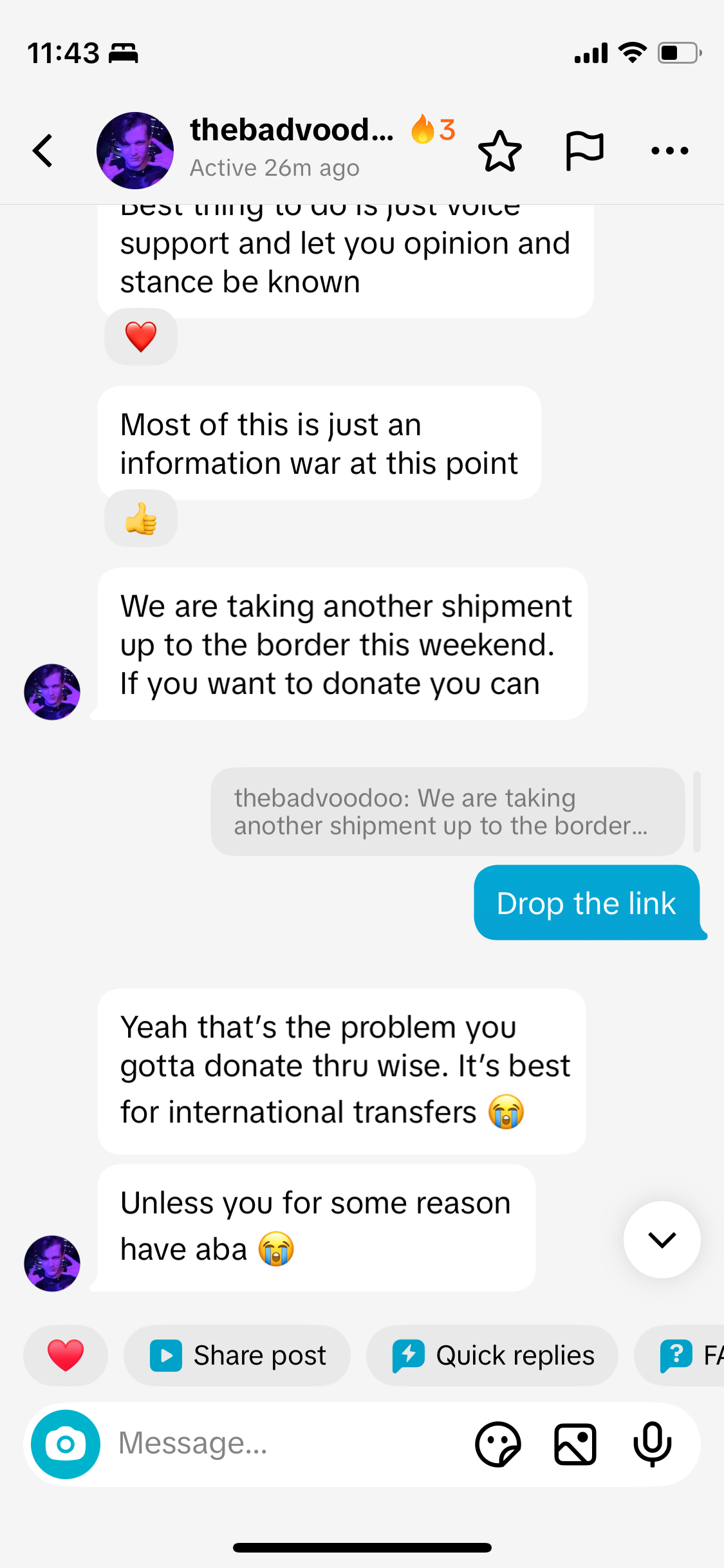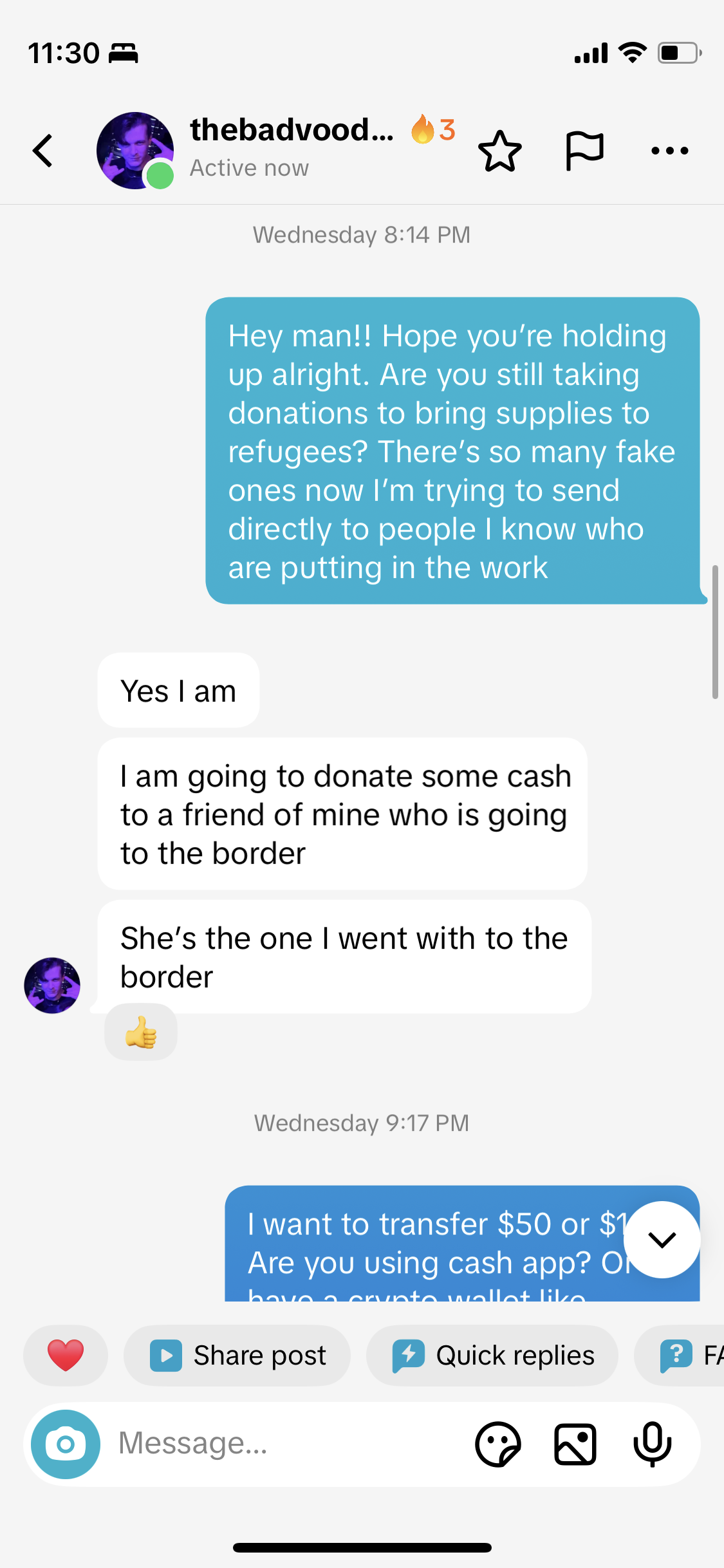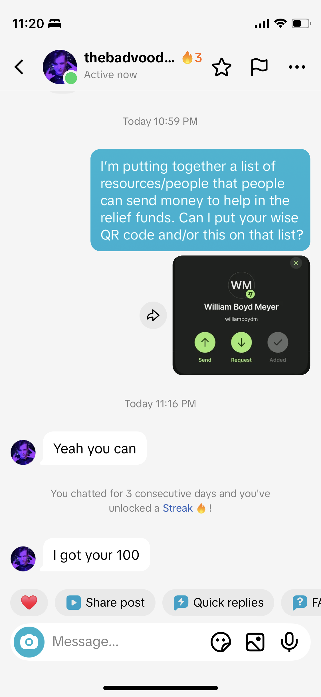 $100 - to Will (from WiseApp portion of this page) to aid displaced people and military families